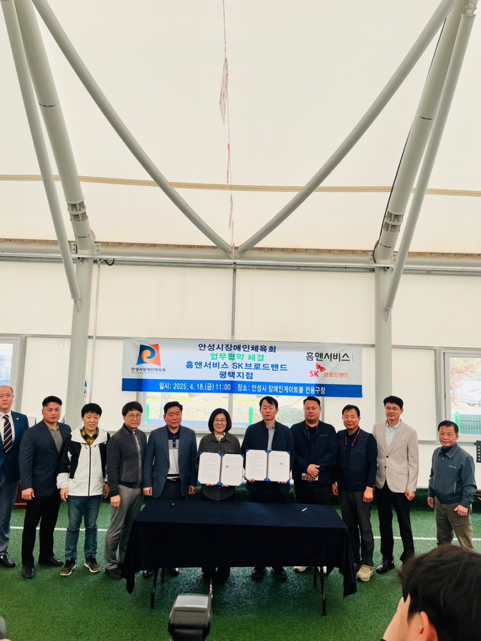 홈앤서비스 SK브로드밴드 평택지점 업무협약 페이지 정보 작성자작성자 : 관리자 조회조회수 : 1,147회 작성일작성일 : 25-05-09 10:29 본문 2025년 4월 18일 (금) 안성시장애인체육회 와 홈앤서비스 SK브로드밴드 평택지점업무협약 체결 목록 이전글제15회 경기도장애인체육대회 2025 가평 안성시 선수단 출전 25.05.09 다음글제18회 경기도장애인생활체육대회 2024 성남 24.10.18